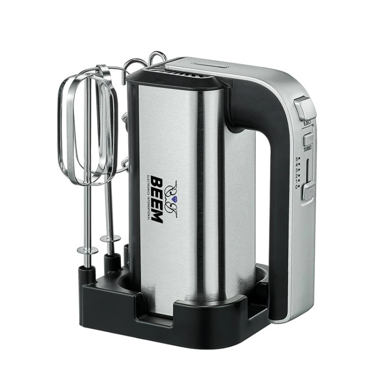 همزن کاسه ای بیم مدل 4503 محصولی فوق العاده برای خانمها و آقایانی است که علاقه زیادی به طبخ انواع کیک، نان و شیرینی دارند. همزن برقی بیم دارای ابزارهای تخم مرغ زن، خمیرزن و همزن است. امروزه همزنهای برقی دستی و کاسهای بسیار کاربرد زیادی در آشپزخانه دارند و اگر شما هم شیرینی و کیک زیاد میپزید، بهتر است یک همزن برقی در خانه داشته باشید. همزدن تخم مرغ با همزن معمولی خسته کننده و زمان بر است و همانطور که میدانید سفیده تخم مرغ را باید به قدری همزد که سفت شود و وقتی کاسه را بر میگردانید نریزد. برای اینکار بهتر است از همزن برقی استفاده کنید تا به خوبی و خیلی سریع این ماده آماده شود. علاوه بر کاربرد همزن برای تهیه مواد کیک و شیرینی میتوان از آن برای همزدن انواع مواد غذایی نرم نیز استفاده نمود. همزن کاسه ای بیم مدل 4503 یکی از مدلهای جدید این برند است که در ادامه به ویژگیهای آن میپردازیم.